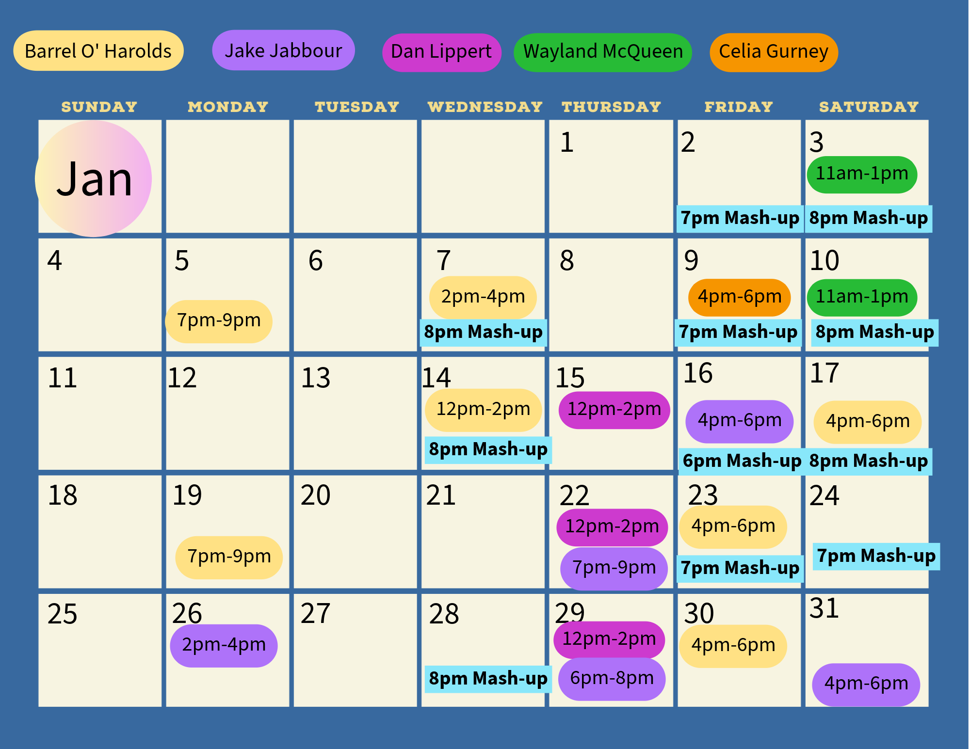 More shows, more support, more community! *Roster, and schedule set at sign-up. No changes for three months*